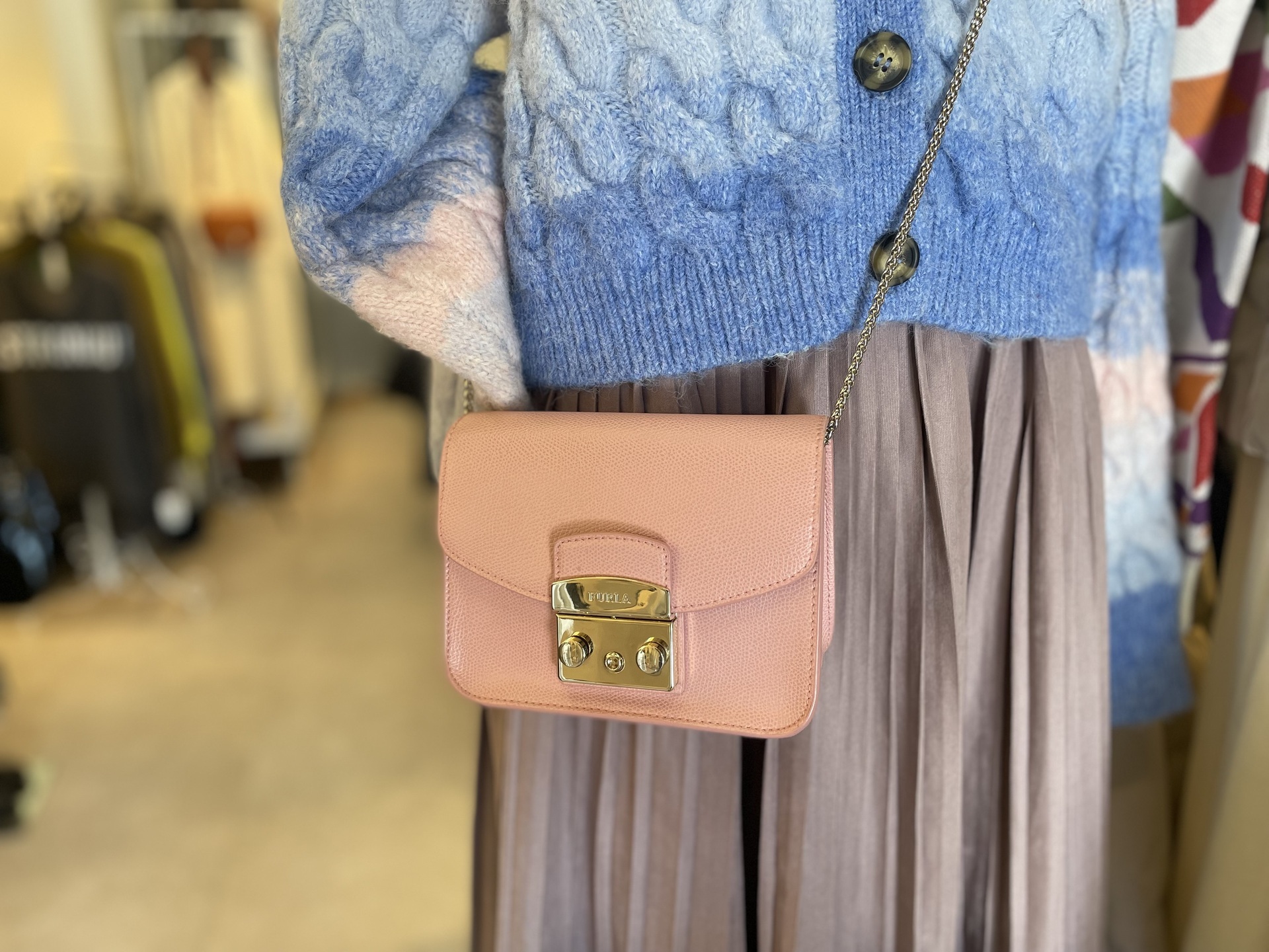 甘すぎないくすみピンクなので、大人っぽさがあります。