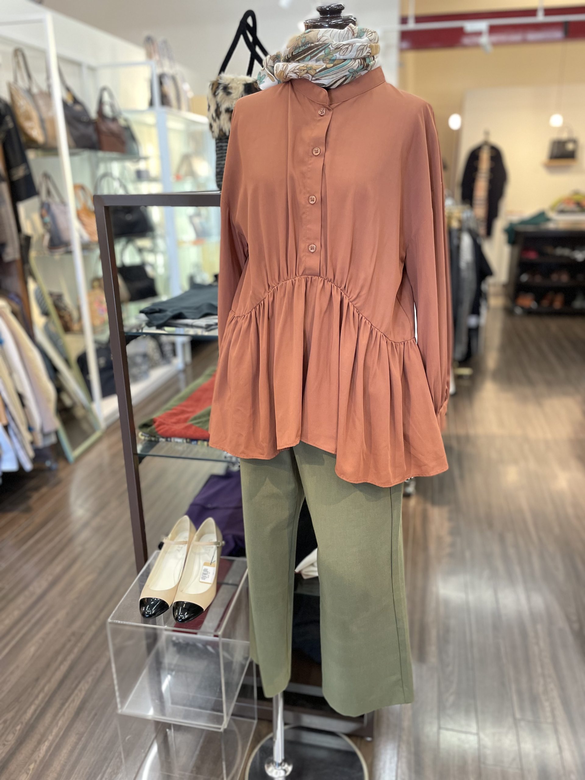 キャンペーン 残暑厳しいですが秋物増えてます Author Shibahara Date 2023/08/29 まだまだ厳しい暑さが続いていますが 少し朝晩が涼しくなってきたような気がします。 外は暑いですがそろそろ秋物のお洋服に目を向けてくださいね。 では秋物をご紹介します トップスはRay Beamsのブラウス。 秋らしい色の
