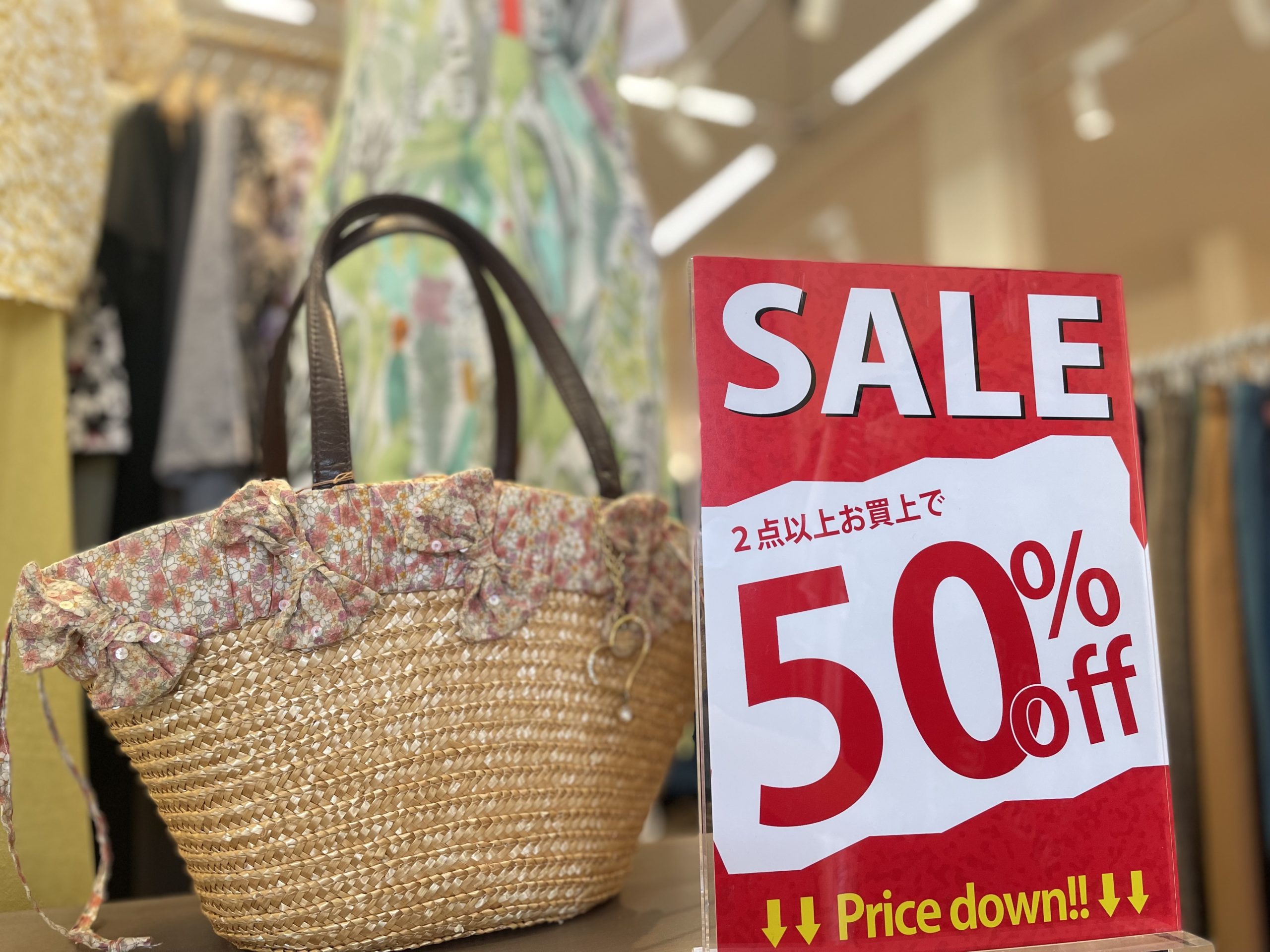 こんにちは😊 今日と明日の2日間は決算SALEを開催しています。 店内商品はほぼ全品%OFF 2日間限定のSALEです。 夏物をお買い得に購入で切りチャンスです。 お時間ありましたらぜひお立ち寄りください…
