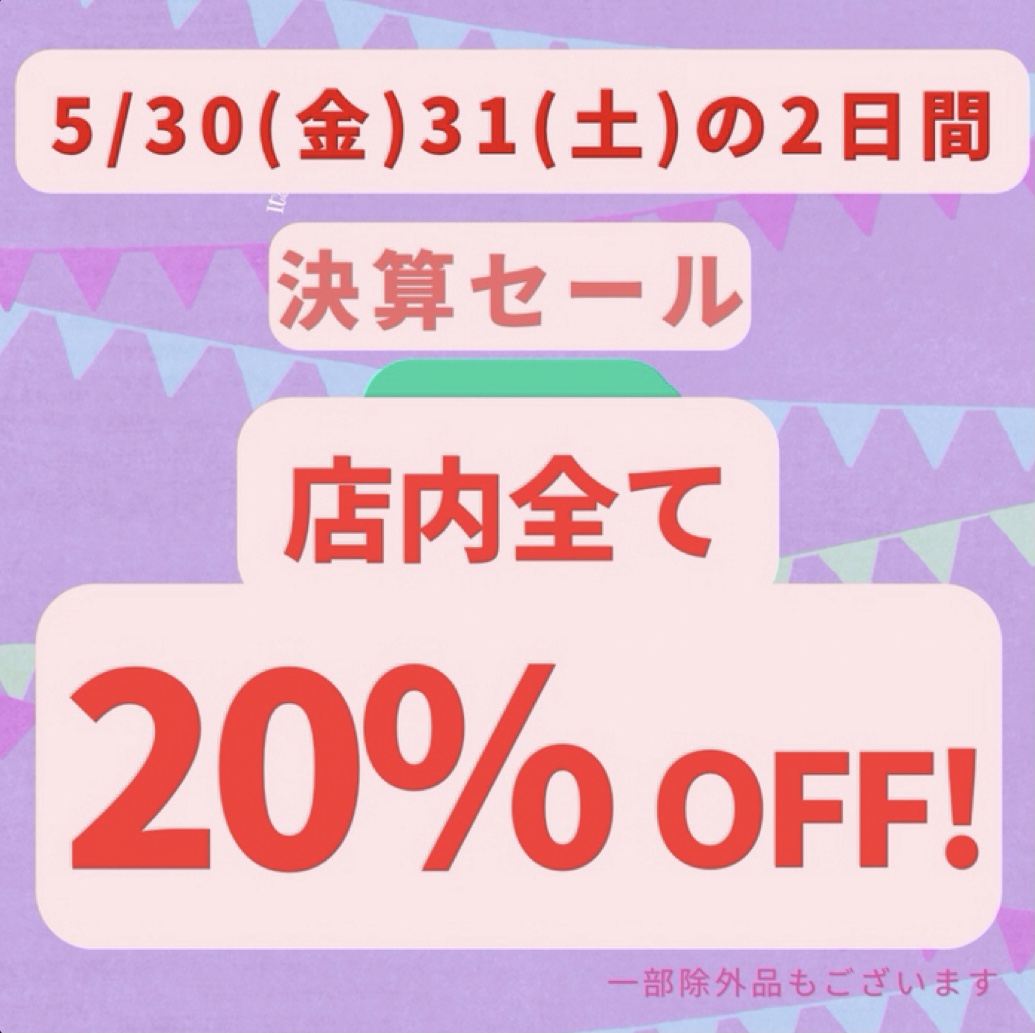こんにちは😀 今日も決算SALE開催しています。 店内商品がほぼ全品20%OFF 今日が最終日です 明日からは通常価格に戻るので 気になる商品があれば、今日お買い物に来てくださいね♪ あれもこれも20%O…