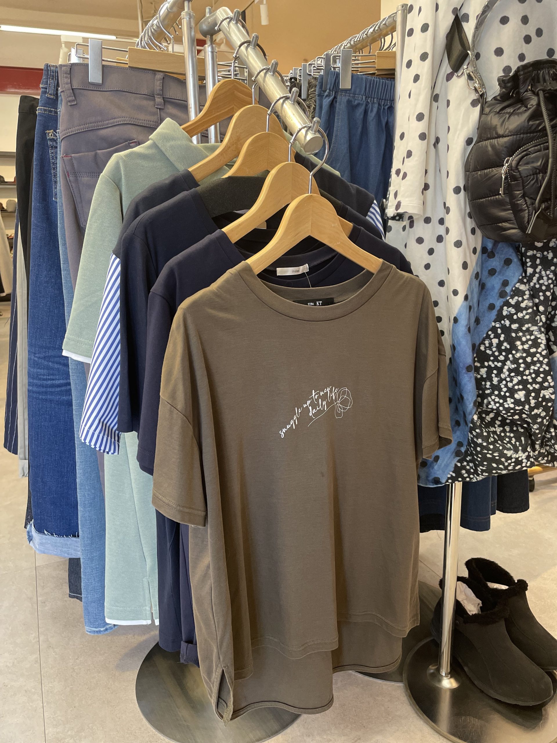 こんにちは😃 9月に入ってもまだまだ暑いですね。 今すぐ着れる半袖のお洋服もまだ少し店頭にあります 色目を少し濃い色に変えると秋らしさが出ます🍂 長袖のカットソーなども入荷してきていますよ…