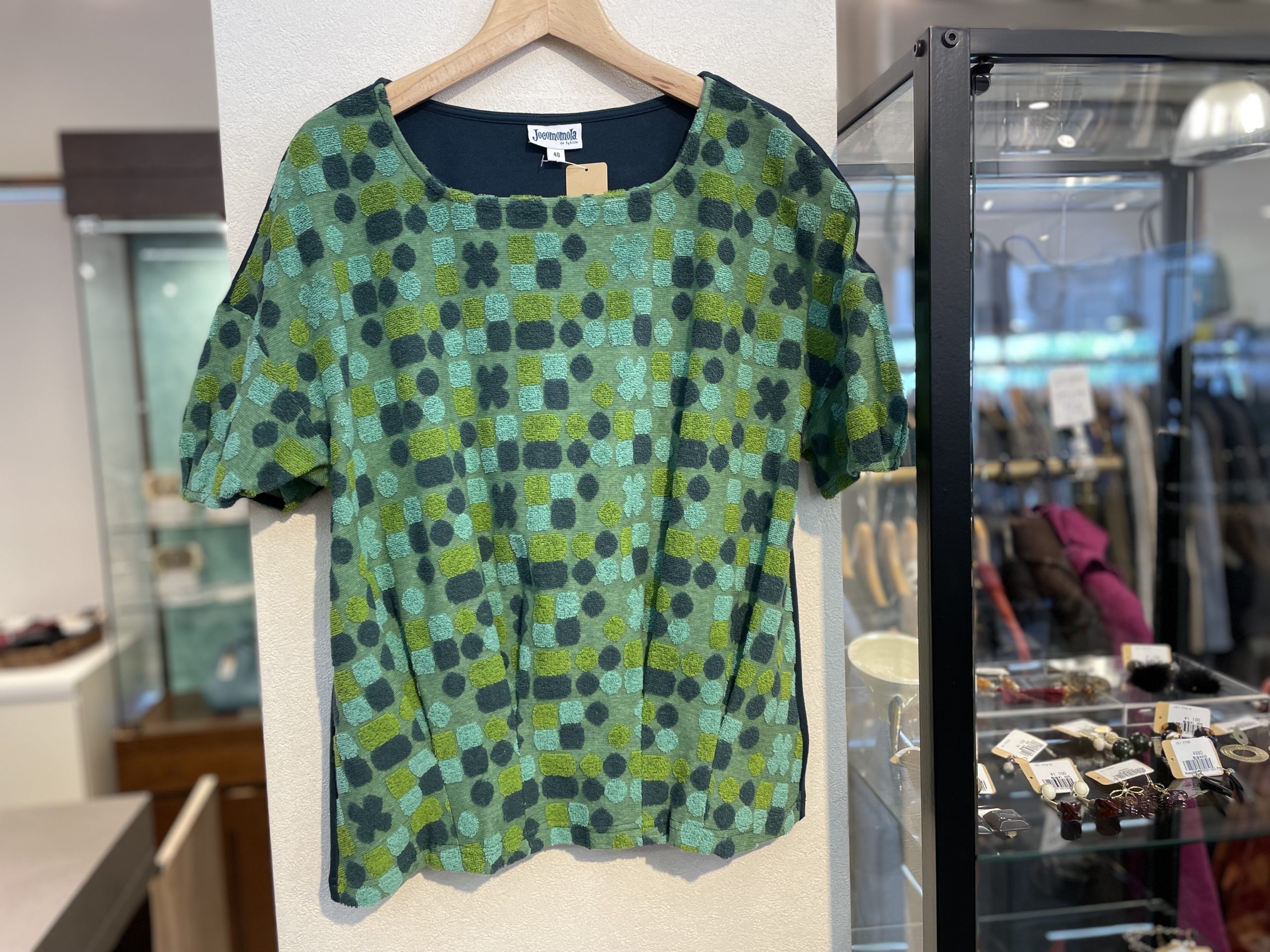 今日からシルバーウィーク。 3連休ですね。 外は暑いですが、涼しい店内でお買い物を楽しんでくださいね。 今日は先日入荷したJocomomola ホコモモラのお洋服をご紹介します グリーンのコットン素材のカットソー。 フロ…