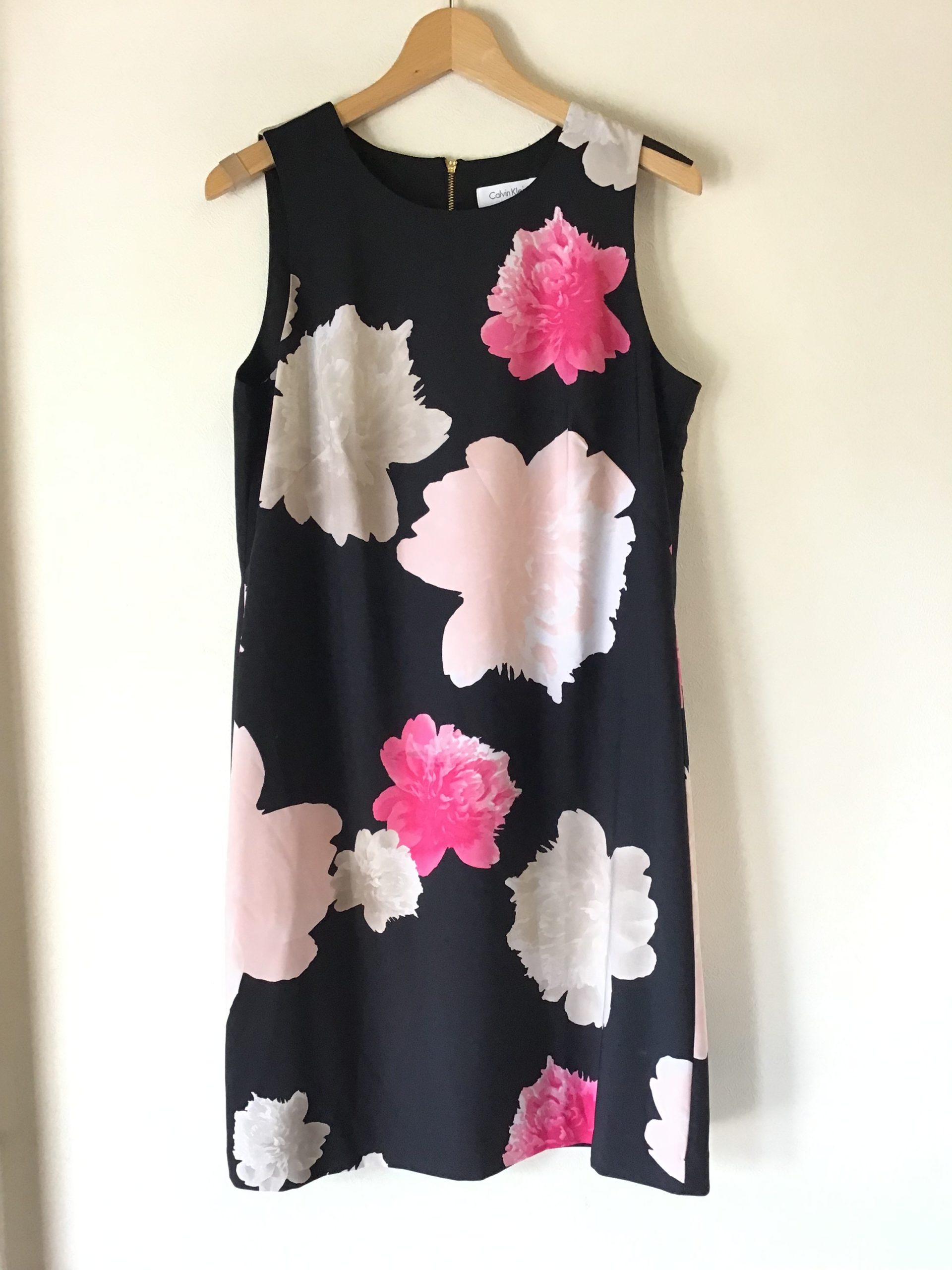 今日も晩夏物をご紹介します夏の服割チケットが残っている方は参考にしてくださいね Calvin Klein カルバンクライン黒に鮮やかなピンクの花柄のワンピースチュニック。大柄な花柄がとても印象的お呼ばれシーン…