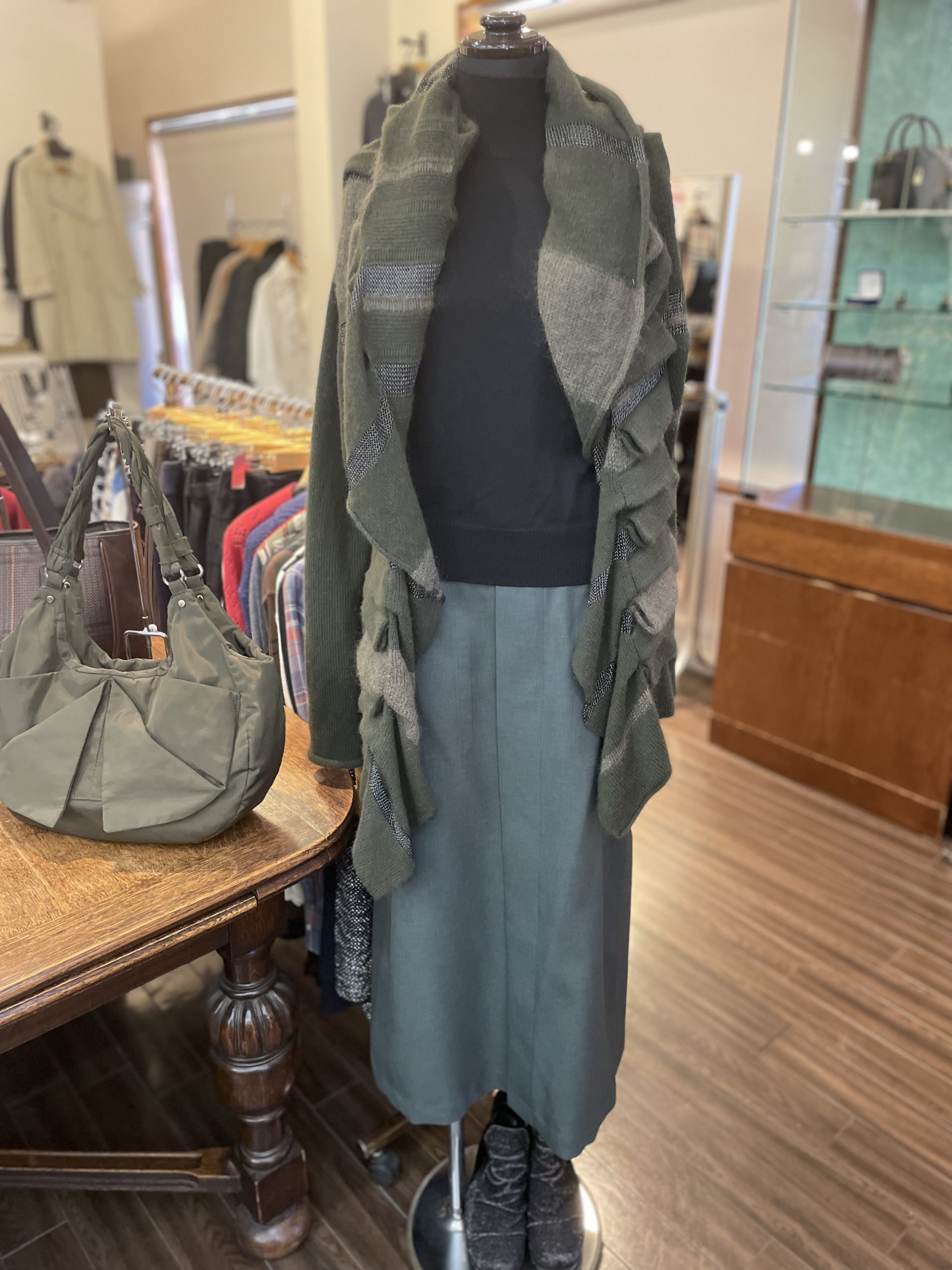 9月も半ばになり、三連休が始まりました。 この3連休は猛暑日が続くそうですが、次の週末は季節が進みそうな予報です。 この連休中に秋物を見にきてくださいね。 では今日はコシノヒロコの商品をご紹介します グリーンのタイトスカ…
