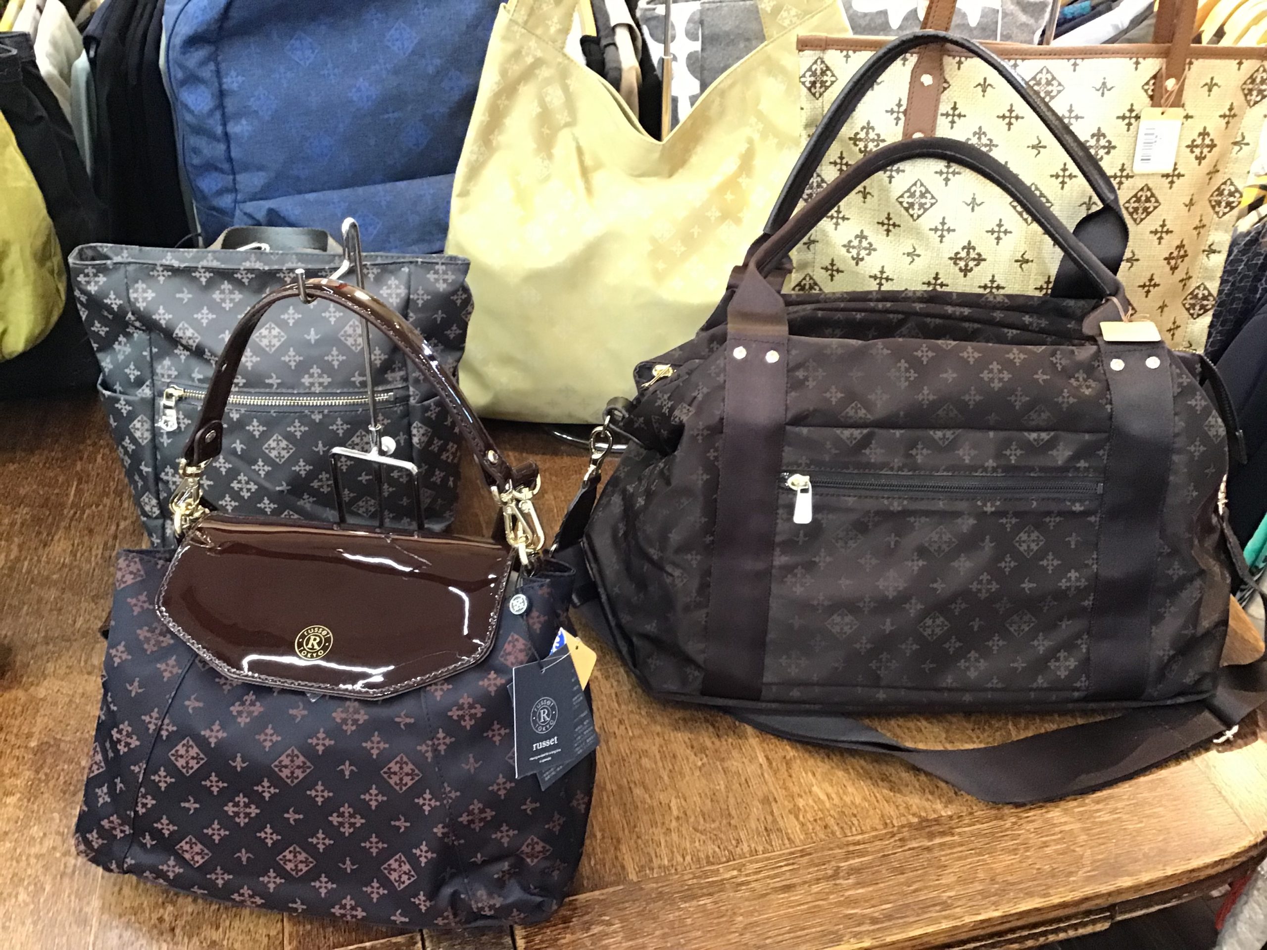 新しいバッグがたくさん入荷しています。今日はrusset ラシットのバッグがいろいろ入荷しているのでご紹介します 色々なタイプのバッグが入荷していますよ こちらは2020年のクリスマス限定モデルエナメルとナイロンコンビの…