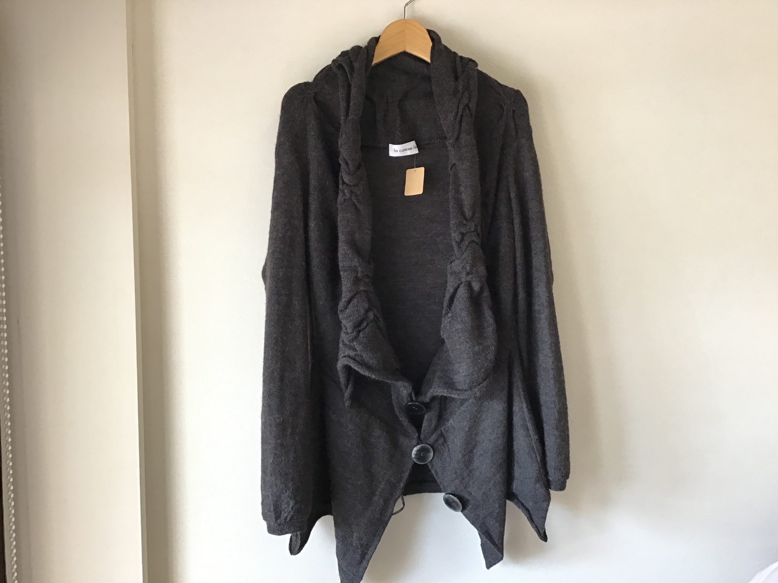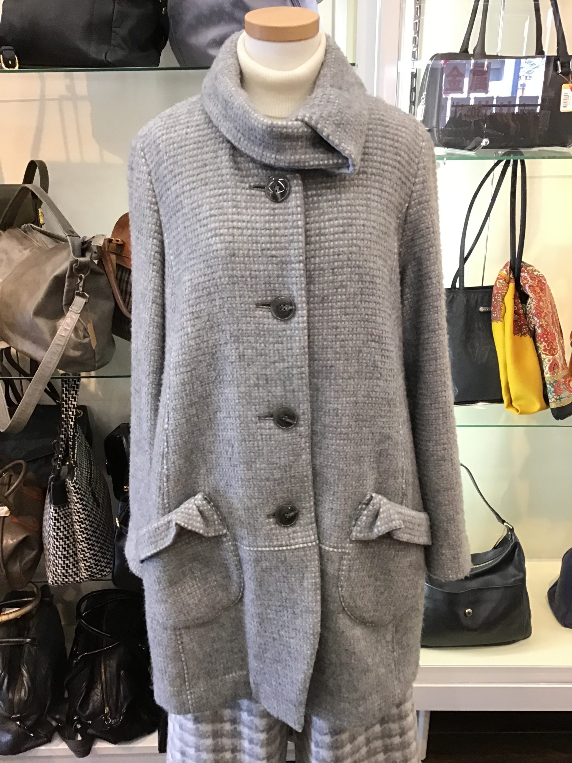 年末が近づいて、掃除など忙しい時期ですね。不要なお洋服などありましたら、ぜひウーボまでお持ちください。では今日も店頭の商品をご紹介します センソユニコ io comme io イオコムイオチャコールグレーのウールアルパカ…