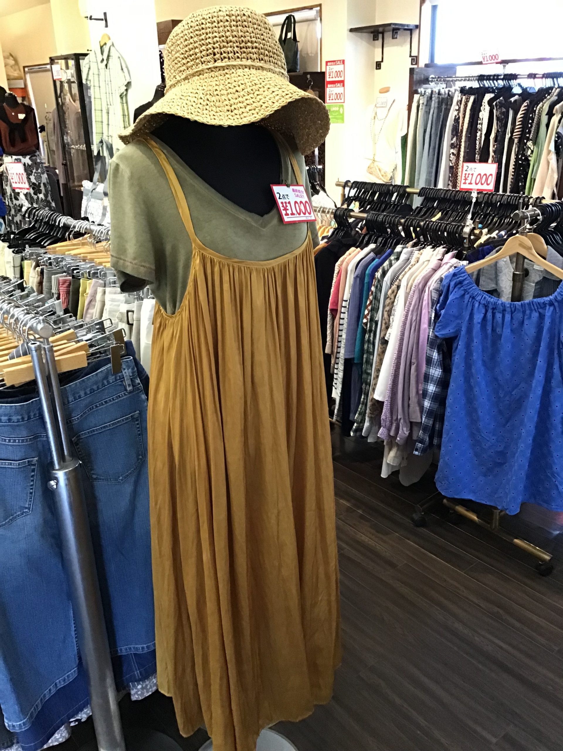 ここしばらく不安定なお天気でしたが暑くなってきましたね。京都は今日も熱中症アラートが発令中です。熱中症に気をつけてくださいね。さてさてウーボではまだまだ夏物SALE開催中です。 2点1000円の商品がまだまだたくさんあり…
