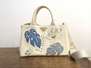 こんにちは(*^▽^*) 東京は桜の開花発表がありましたね 連休明けには近畿地方も桜が咲き始めるかもしれません。お花見楽しみですね♪ さて今日は素敵なバッグをご紹介します。 PRADA プラダ ハワイ限定の 「CANAP …