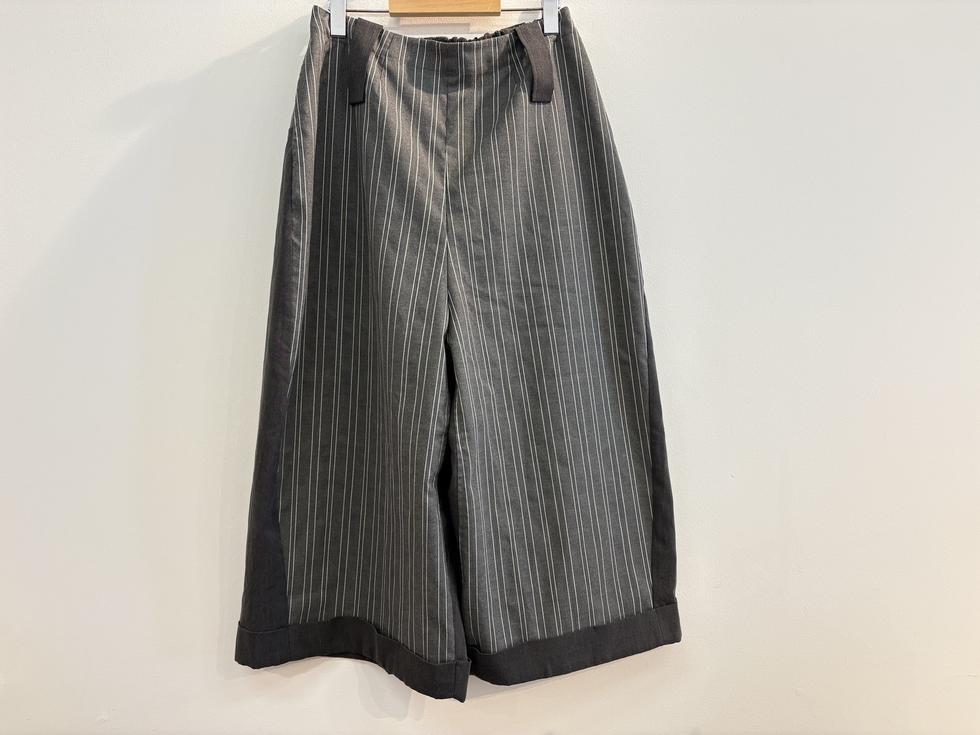 ストライプのワイドパンツ。