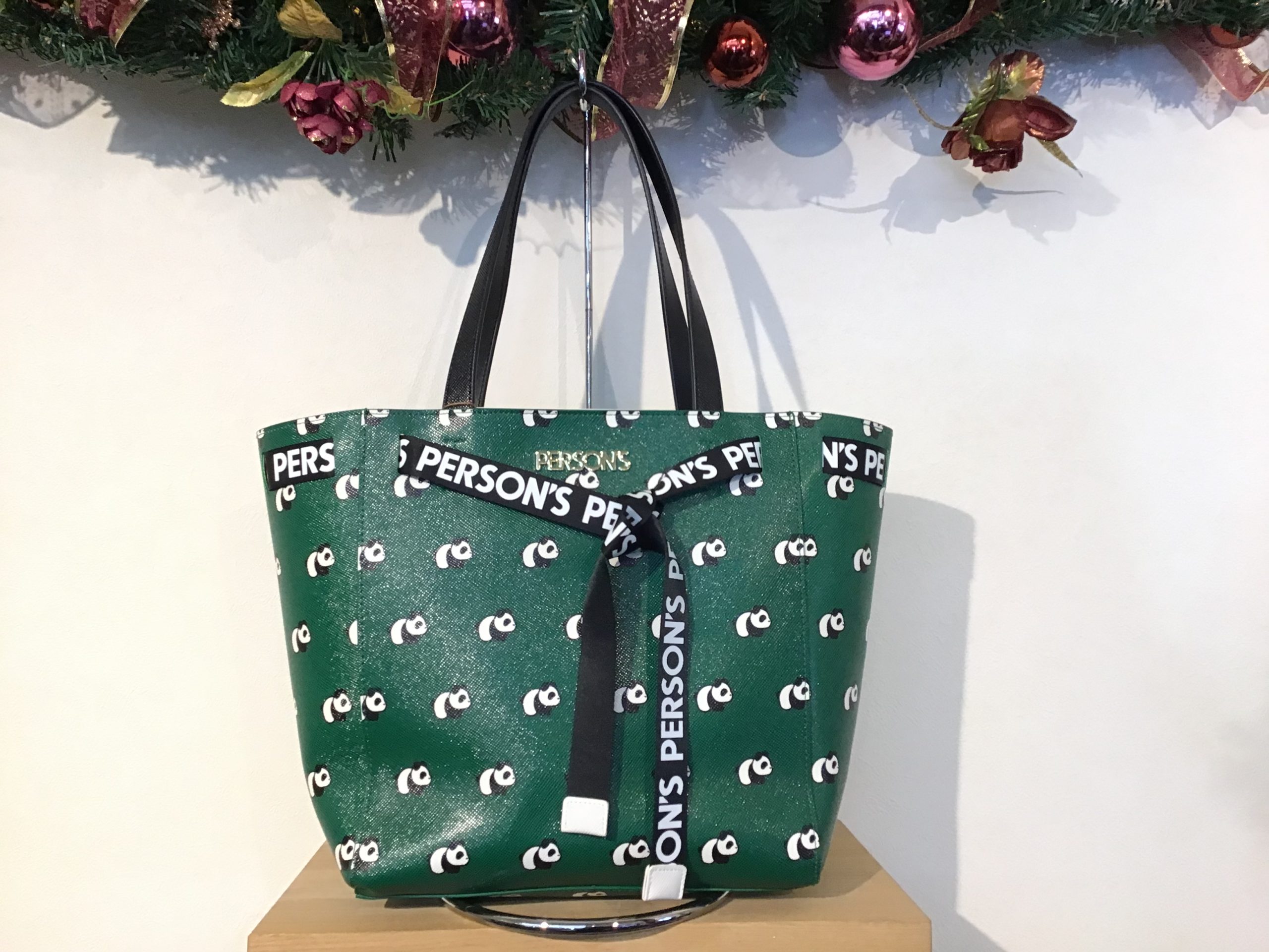 11月ももう少しで終わりですね。 クリスマスも近づいてきました。プレゼントなどにもぜひご利用くださいね。 では週末新しく入荷した商品をご紹介します PERSONS パーソンズグリーンのパンダ柄 ロゴテープバッ…